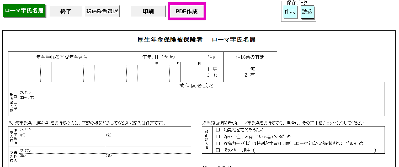 外国人の社会保険資格取得届で、ローマ字氏名届を合わせて提出したいのですが台帳で作成できますか?