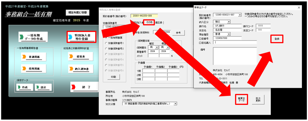 事務組合一括有期で総括表を作成しようとしたところ「事務組合データが作成されていないため、処理を行うことができません」問い合わせ内容 事務組合一括有期で総括表を作成しようとしたところ「事務組合データが作成されていないため、処理を行うことができません」と表示され総括表を作成できません。 回答 事業主のデータが登録されていない場合に表示されます。 以下の箇所をご確認ください。 1.事業所の会社情報にある「労働保険」タブ内「一括有期」タブに会社情報が登録されているか。 2.処理ファイル事務組合一括有期の特別加入者等登録にある「事業主データ」が登録されているか。